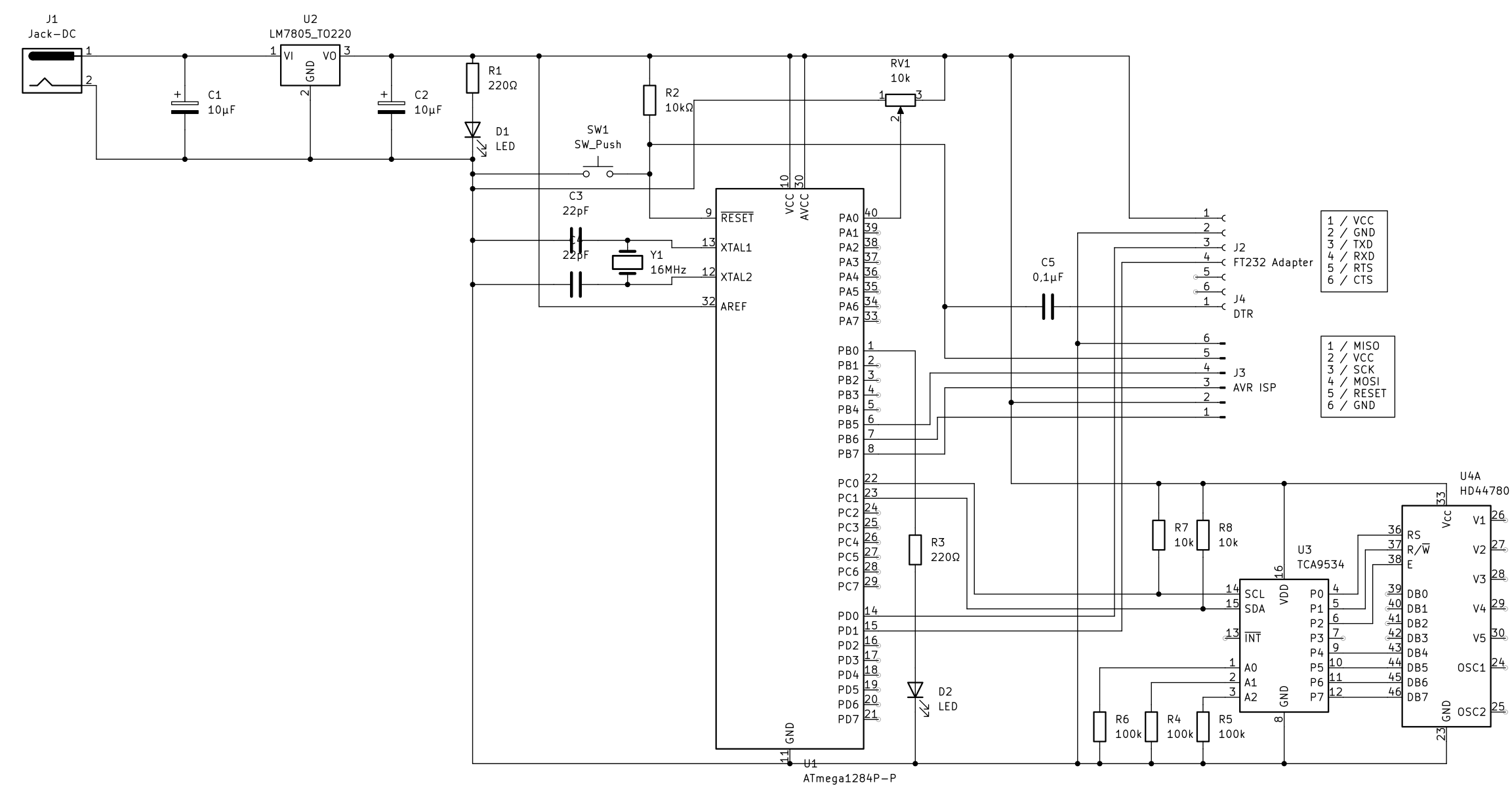 a minimal microcontroller system based on the ATmega 1284p chip, we're now going to